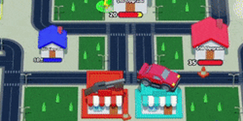 Shoot coins at your own building to increase building's health, so it is harder to be bought out by other player. Same case for the character, withdraw coins from buildings to make your character stronger, so try to find a best strategy - carry more money to be more offensive or leave most money in the bank/buildings to defend.